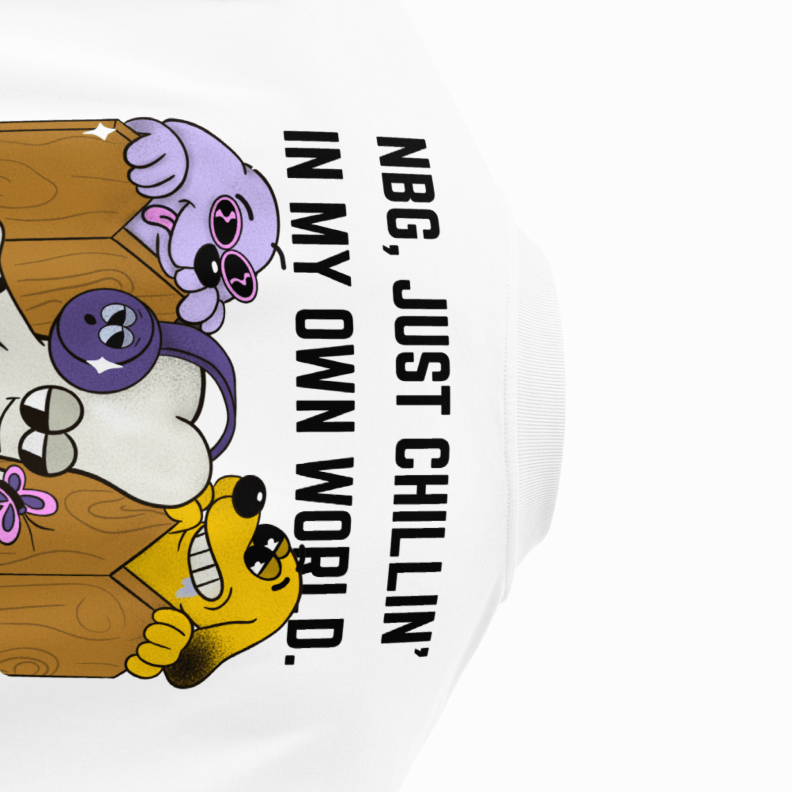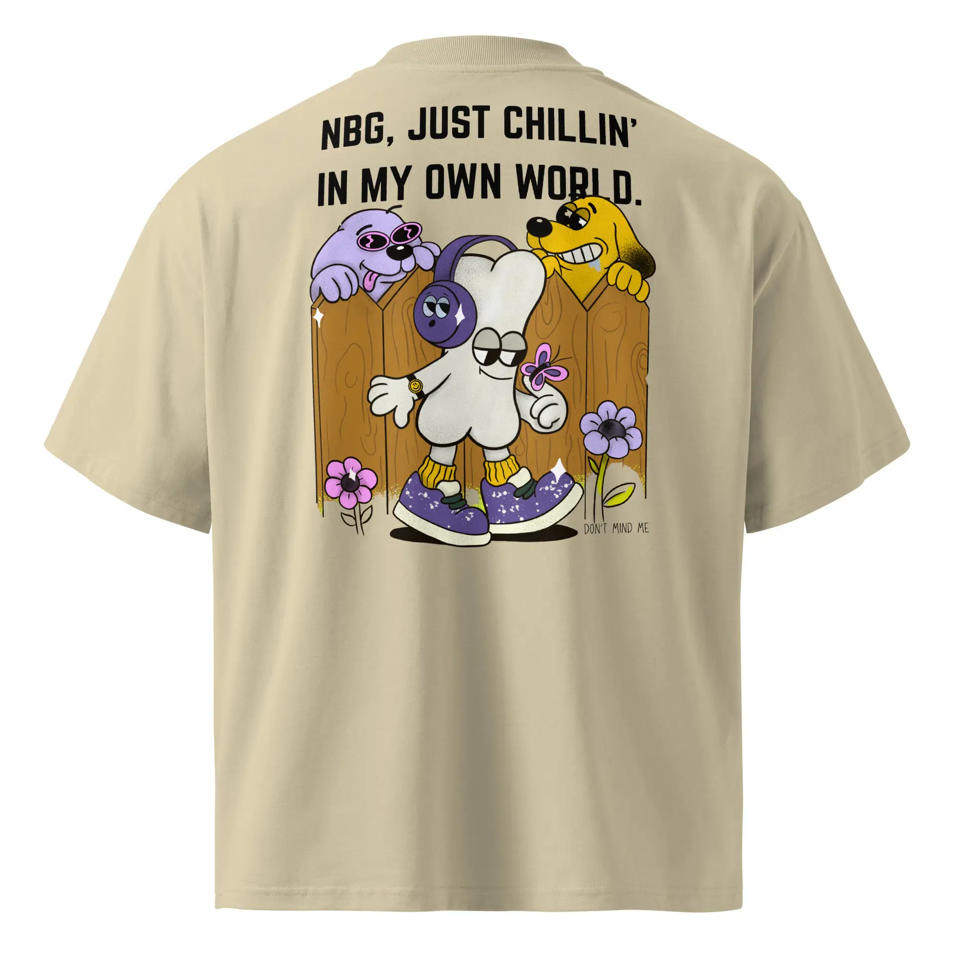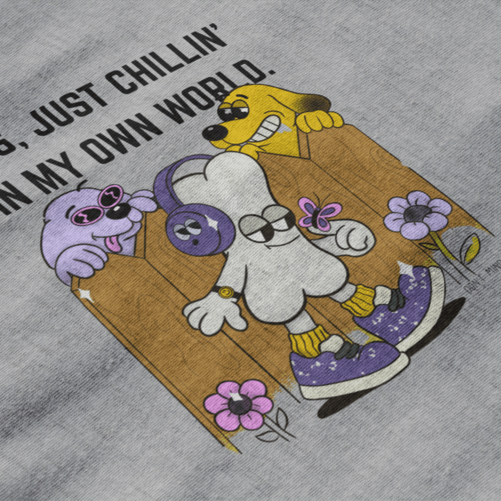 The Chill Mode T-Shirt is all about ease—casual, creative, and unapologetically in its own world. With a playful oversized fit and a vibrant back graphic, it captures the art of just being: headphones on, worries off, flowers in hand. The bold message “NBG, Just Chillin’ in My Own World” reminds us that sometimes the best company is your own rhythm, your own flow. Crafted in soft stone-colored cotton, this tee pairs everyday comfort with a statement of individuality, true to Regalioso’s spirit of originality and authenticity. Whether for quiet afternoons, city walks, or just zoning out with your playlist, it’s more than clothing—it’s a wearable reminder to embrace your pace and let the world spin on.