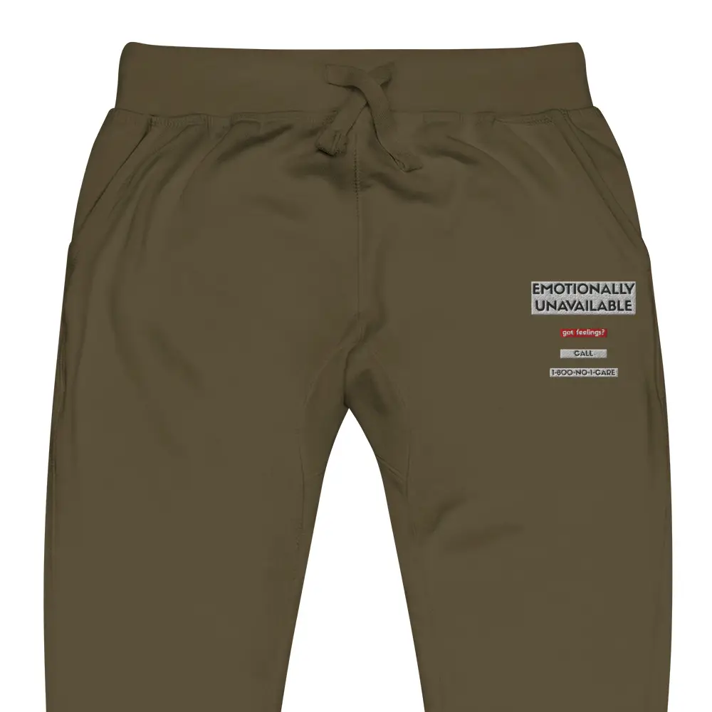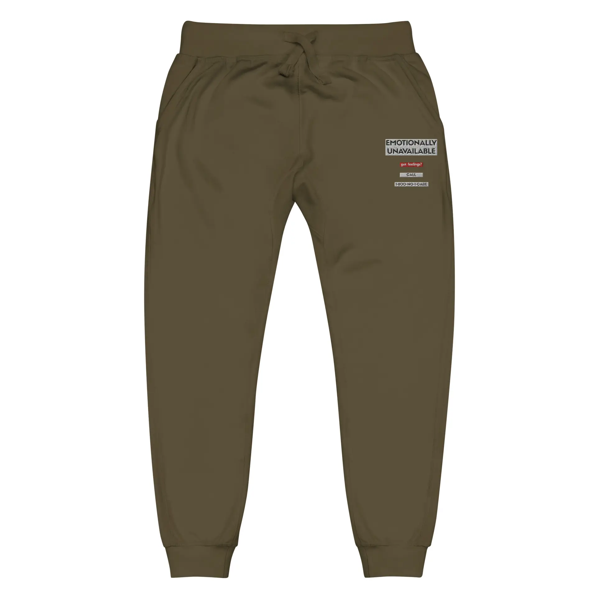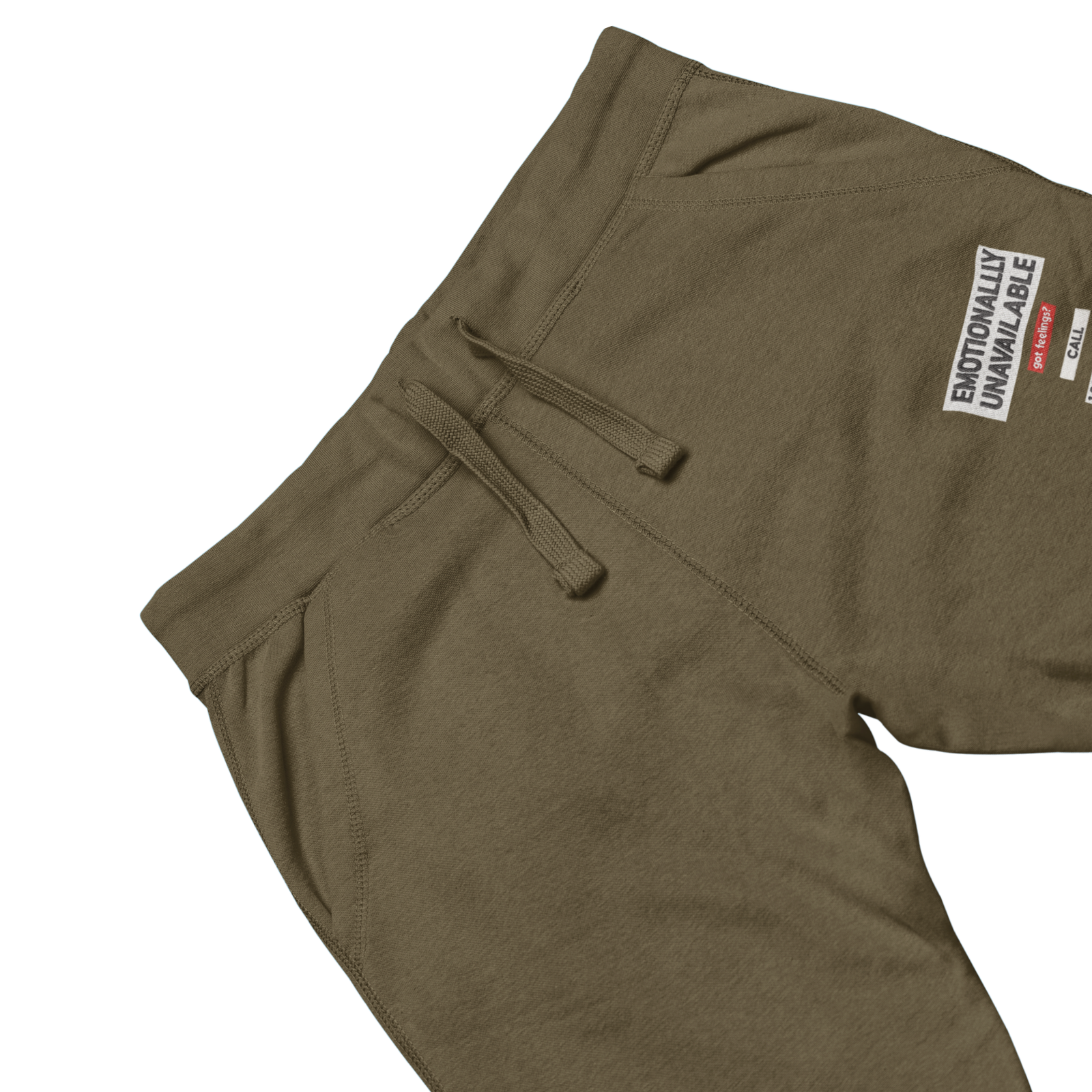 The Emotionally Unavailable Joggers are comfort with a twist of irony—designed for those who keep it real, even when it comes to feelings. In military green fleece with a relaxed silhouette, they carry a playful embroidered patch reading “Emotionally Unavailable” alongside a mock hotline that says it all: Got feelings? Call 1-800-NO1-CARE. Subtle, witty, and undeniably bold, they embody Regalioso’s ethos of originality and authenticity, turning loungewear into a statement. Perfect for downtime, creative fits, or just moving through the day with effortless cool, these joggers prove that humor and honesty can coexist in style. More than just pants, they’re a reminder that sometimes the best armor is a good laugh—and a comfortable fit.