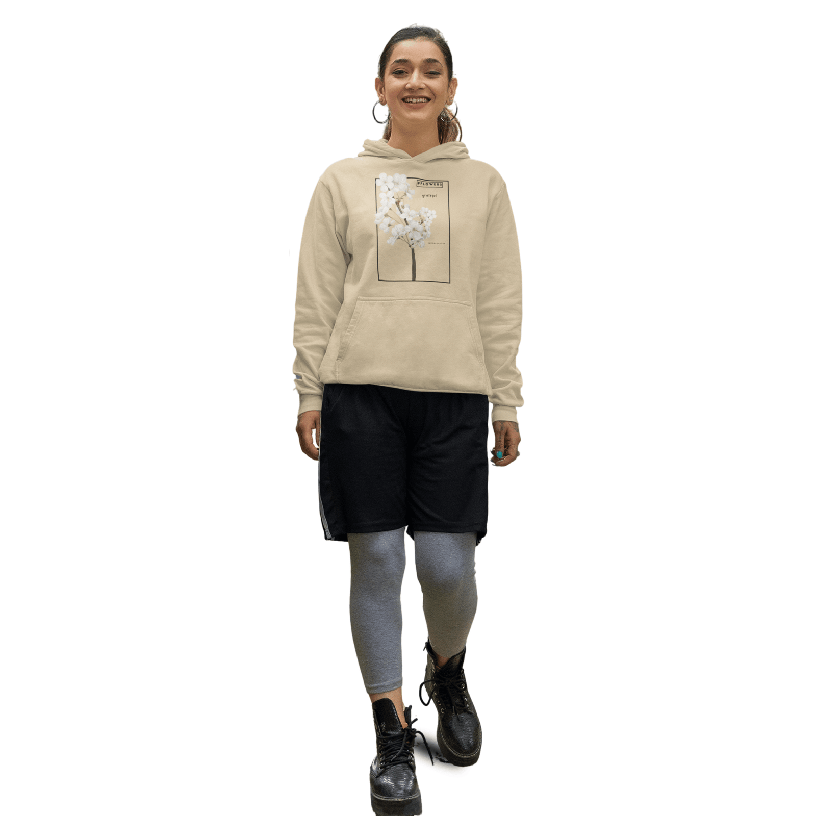 Gratitude never goes out of style—and now, it blooms. The Floral Gratitude Hoodie features a delicate embroidered flower design that quietly radiates warmth and intention.