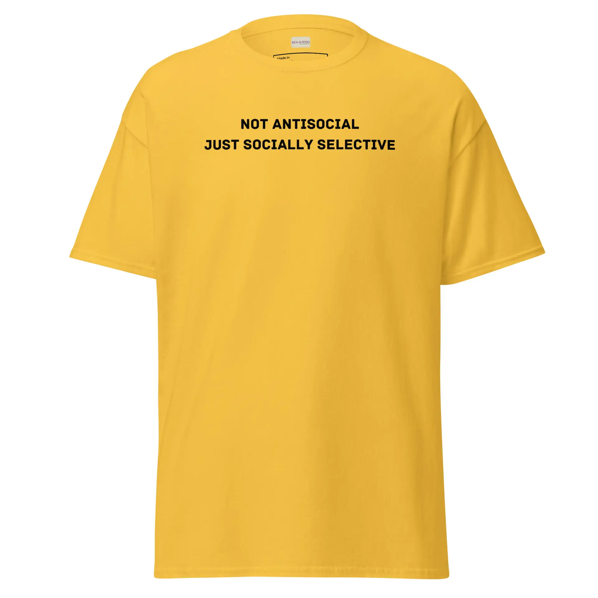 Silence speaks louder in the Introvert Mode On tee—a soft, structured statement for those who socialize on their own terms. With a minimalist design and a message that sets boundaries with style, this cotton classic is your armor for low-energy days and selectively curated company. Regalioso made this for the ones who recharge in solitude and keep it real in comfort. It’s not antisocial—it’s intentional.