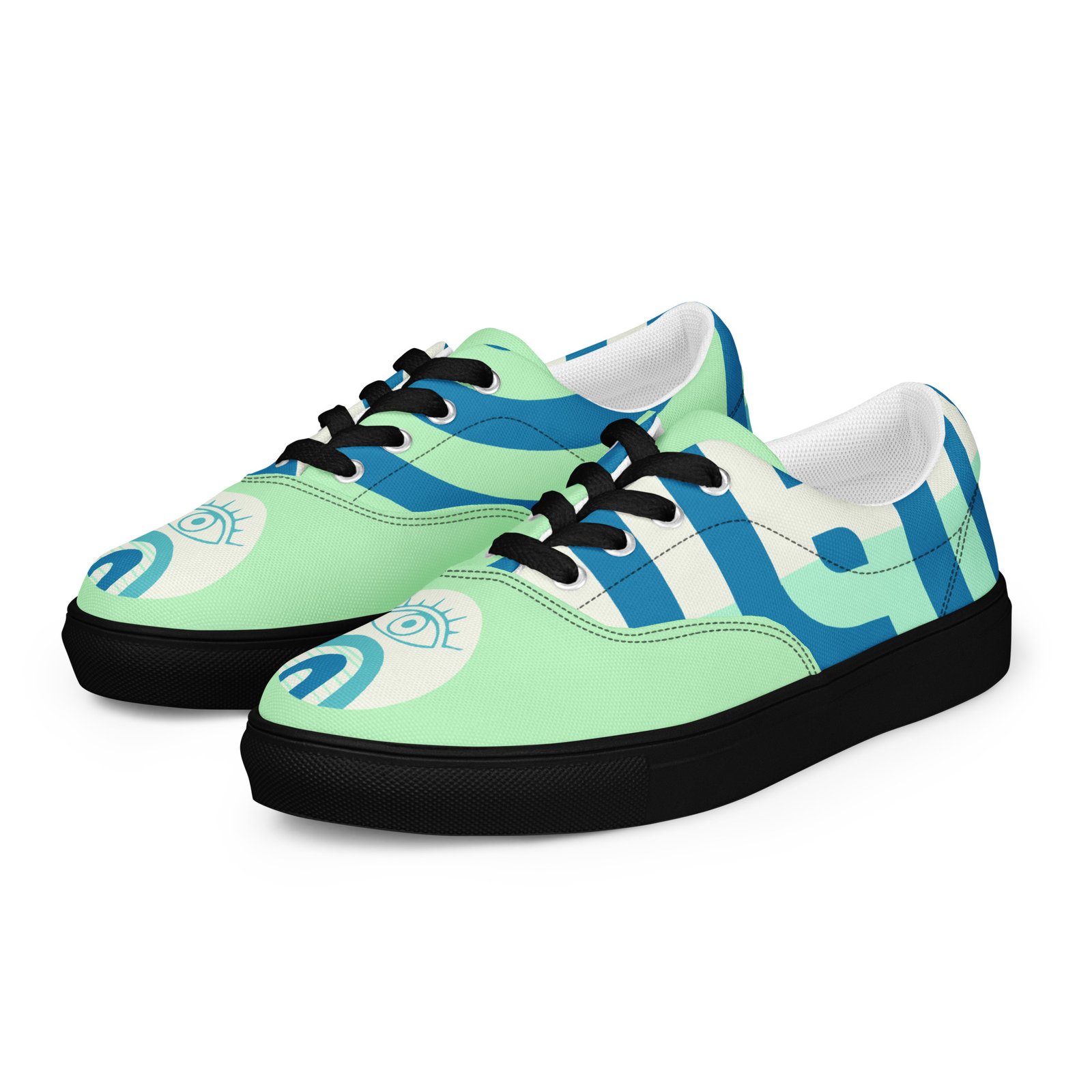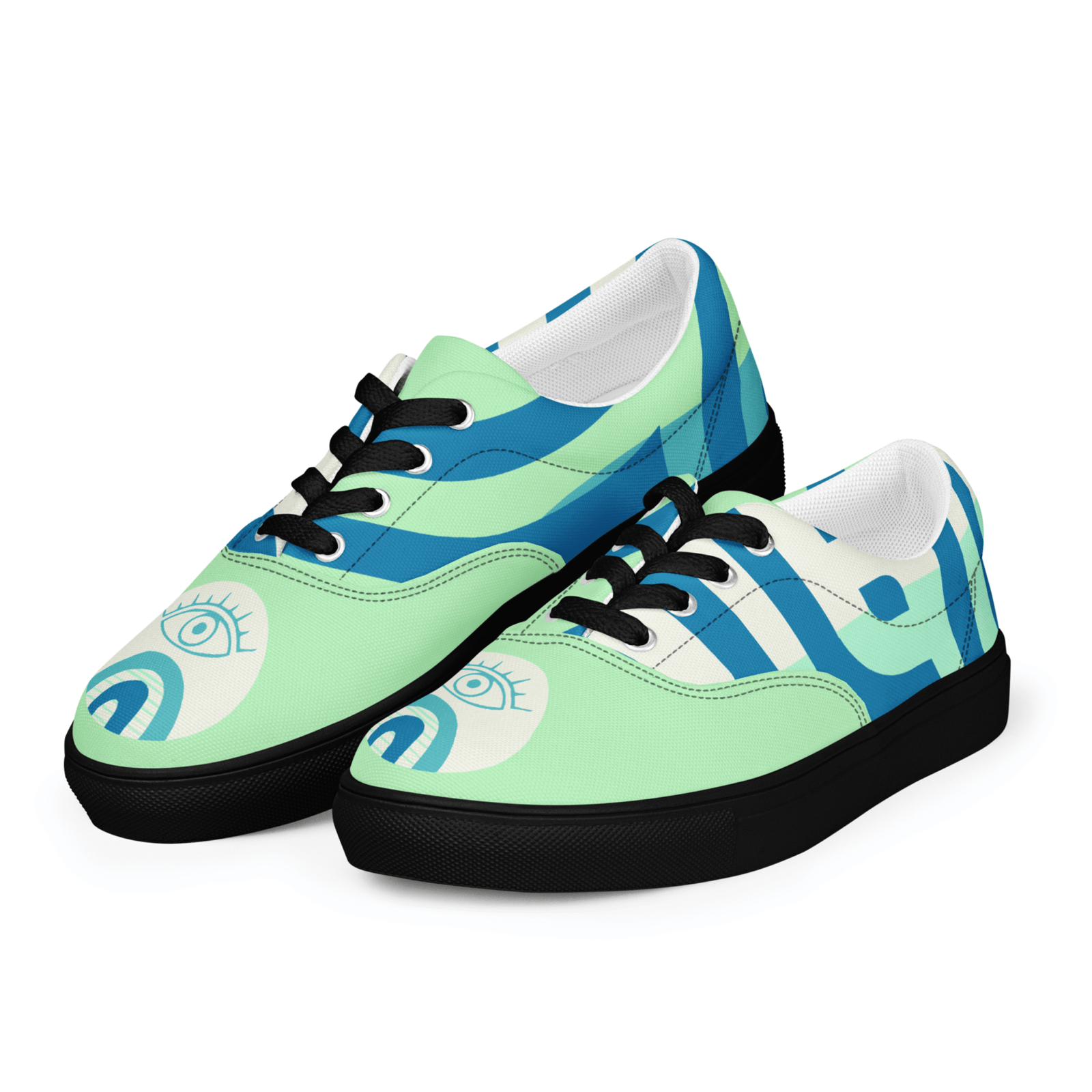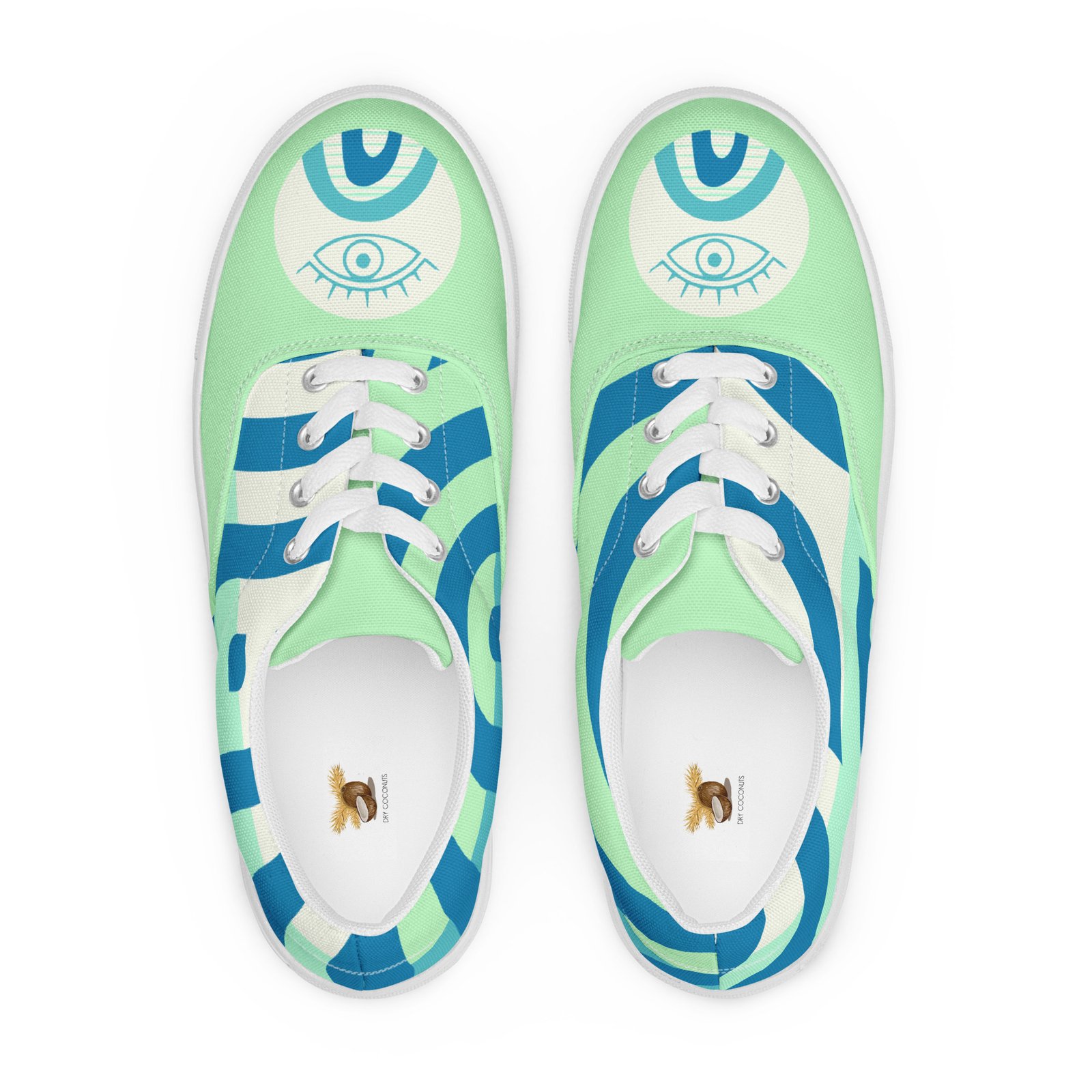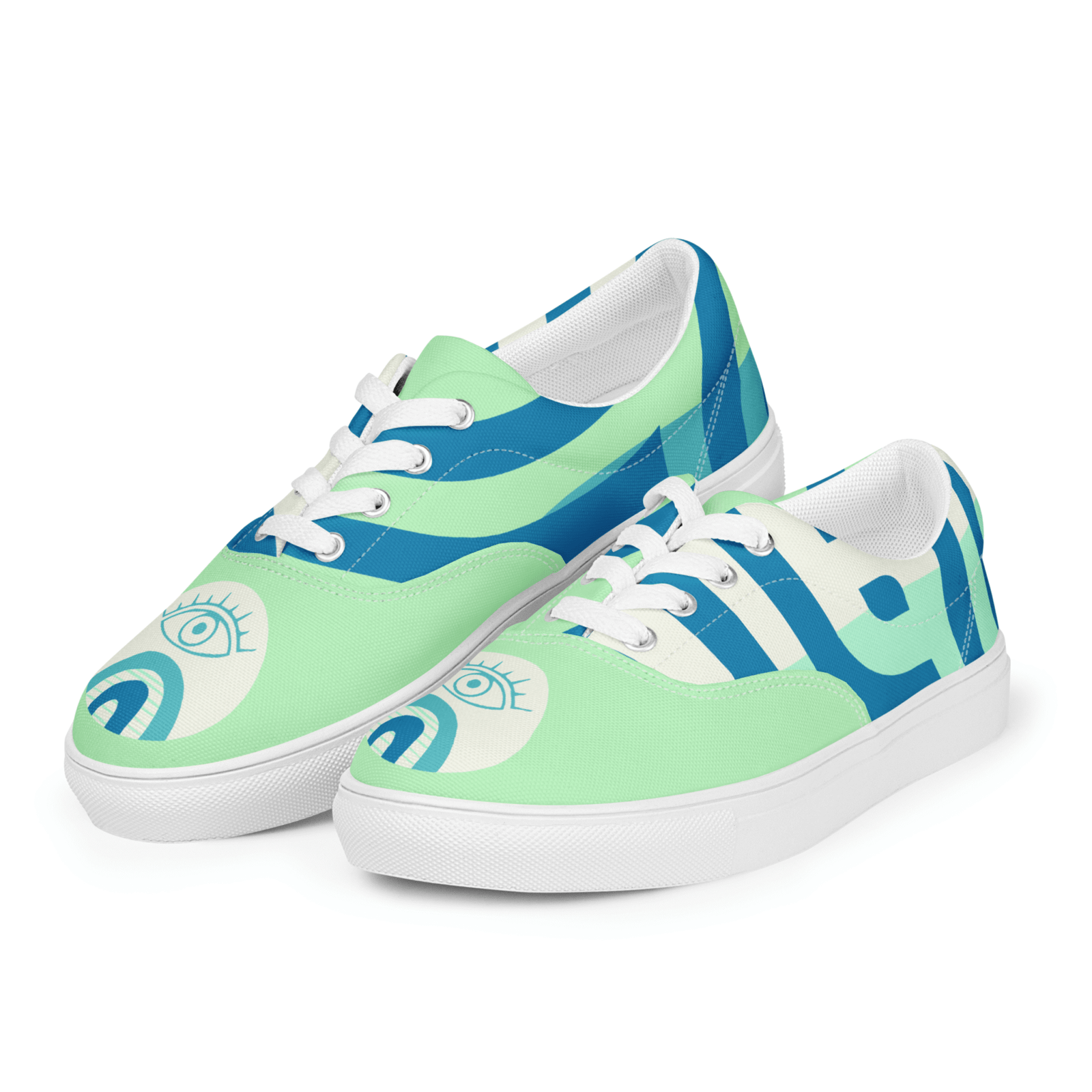 Mystic Eye Women’s Sneakers | Mint & Blue with Eye Detail | Unique & Artistic Footwear