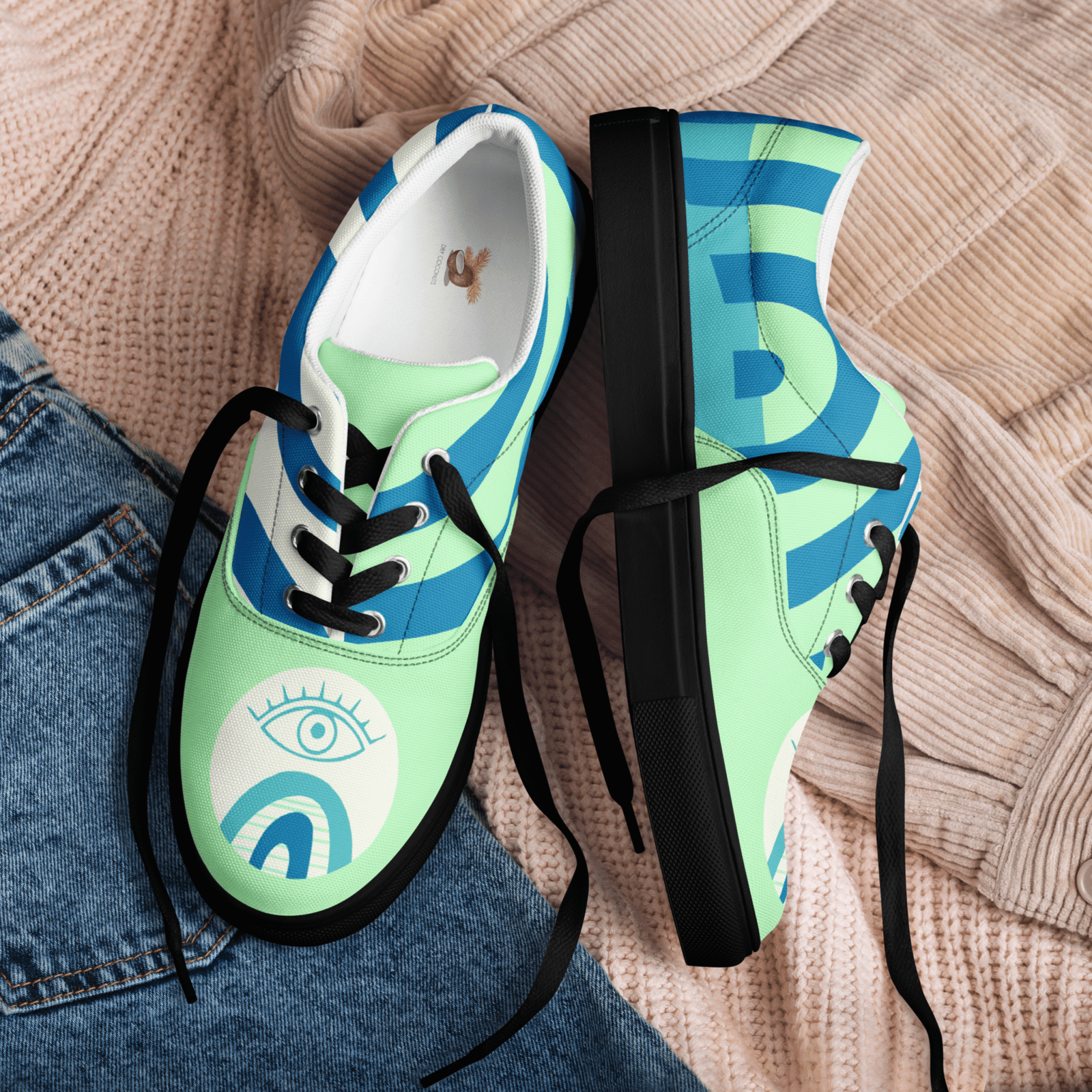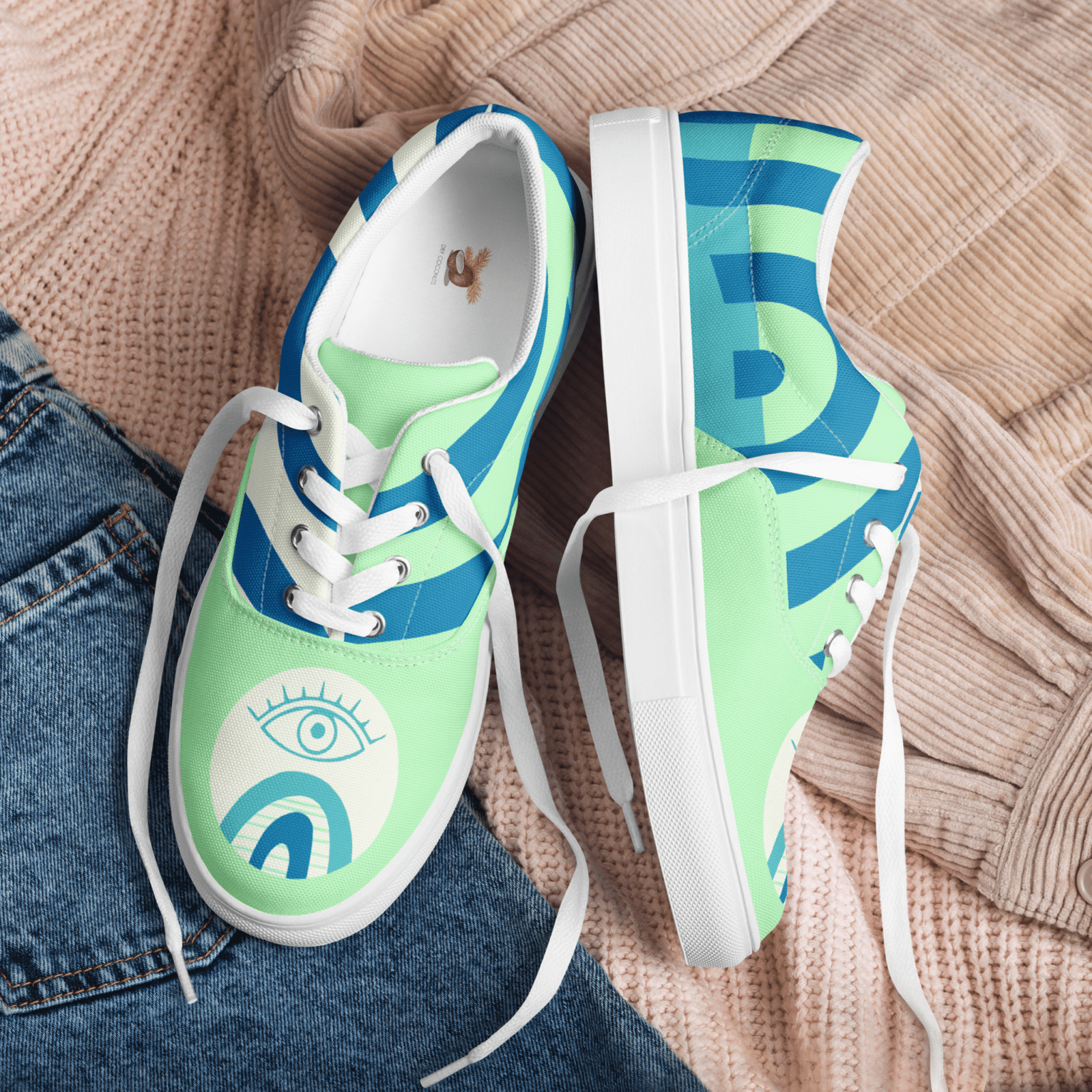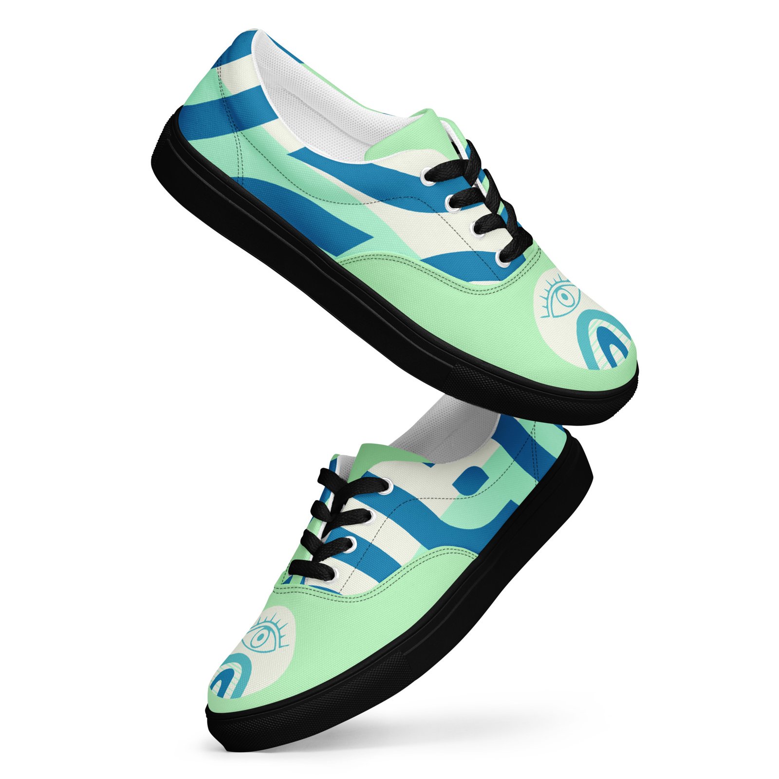 Mystic Eye Women’s Sneakers | Mint & Blue with Eye Detail | Unique & Artistic Footwear