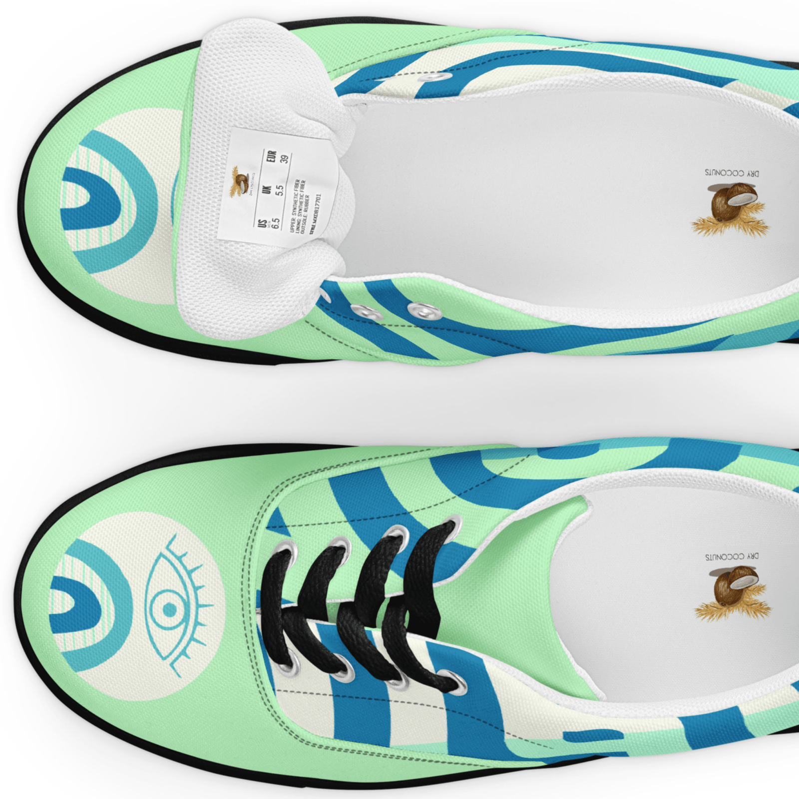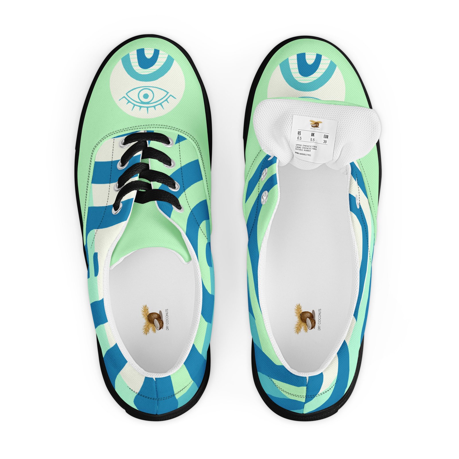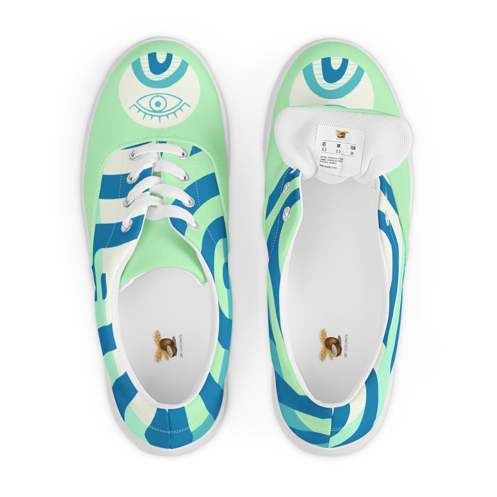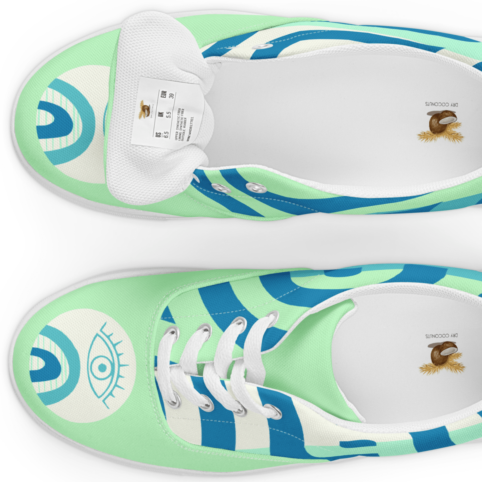 Mystic Eye Women’s Sneakers | Mint & Blue with Eye Detail | Unique & Artistic Footwear