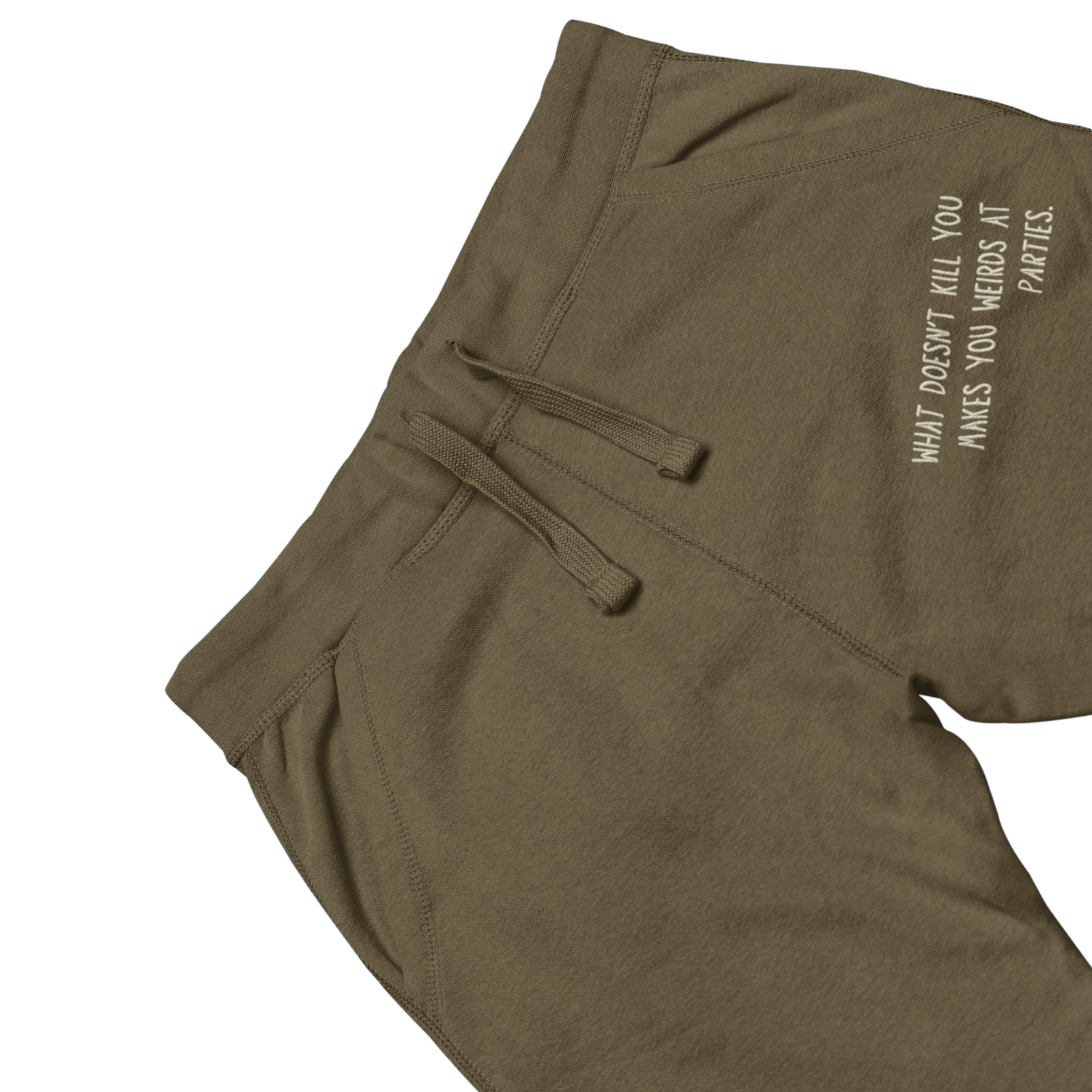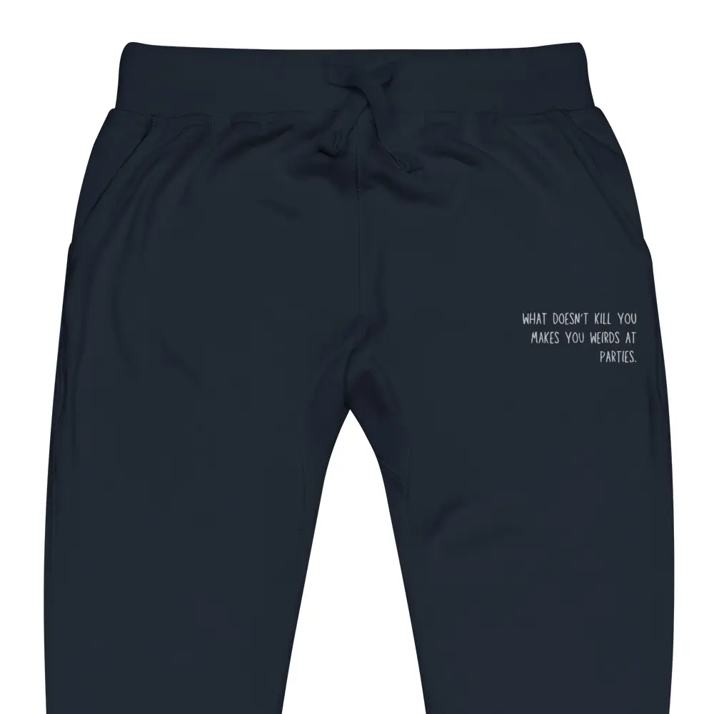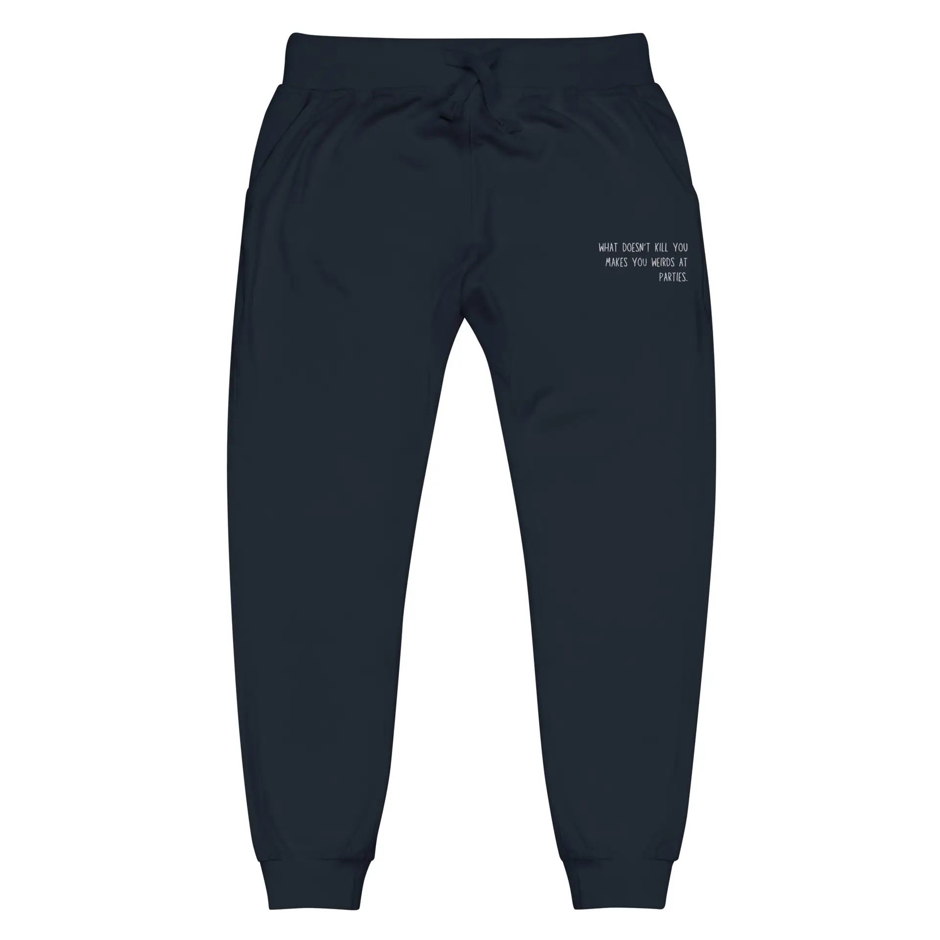The Party Paradox Joggers prove that comfort and wit can coexist. In deep black with a subtle embroidered phrase—“What doesn’t kill you makes you weirds at parties”—they carry that touch of dark humor that turns heads without trying too hard. Crafted in soft fleece with a relaxed fit and drawstring waist, they’re made for lounging, moving, and living with ease. At Regalioso, every piece is a canvas of personality, and these joggers speak to those who embrace authenticity and aren’t afraid of a little irony. Perfect for laid-back days, creative streetwear looks, or simply adding a sharp edge to your casual rotation, they’re more than loungewear—they’re a reminder that style is also about not taking yourself too seriously.